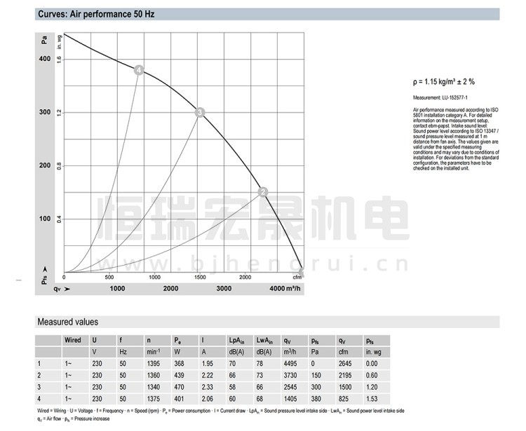 德国ebmpapst R4E400-RO09-05 风机结构风量图