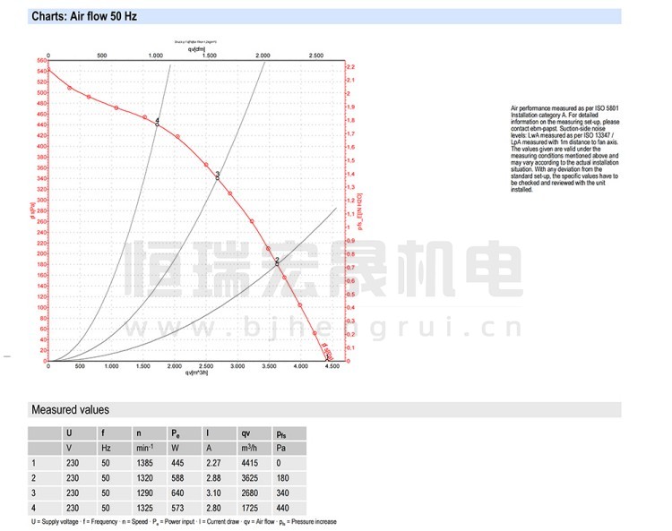 德国ebmpapst R4E450-AB09-06 风机结构风量图