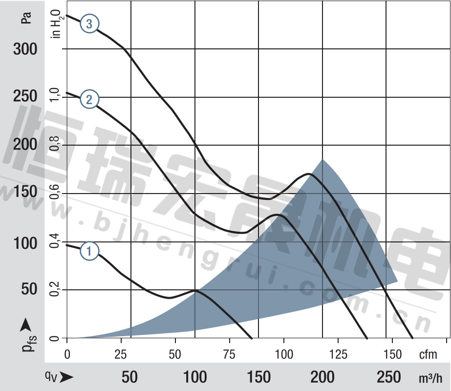 德国ebm全新3252J/2H3P 3254J/2H3P紧凑型风机曲线图