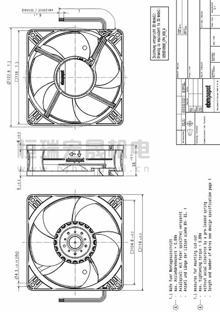 德国ebmpapst风机 4414/2HH 轴流风机结构图