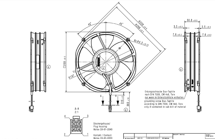 德国ebmpapst 2214F/2TDHOU-754风机结构图