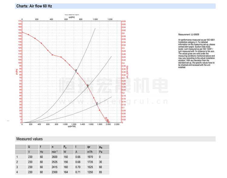 德国ebmpapst S2E250-AL06-11 轴流风机结构风量图