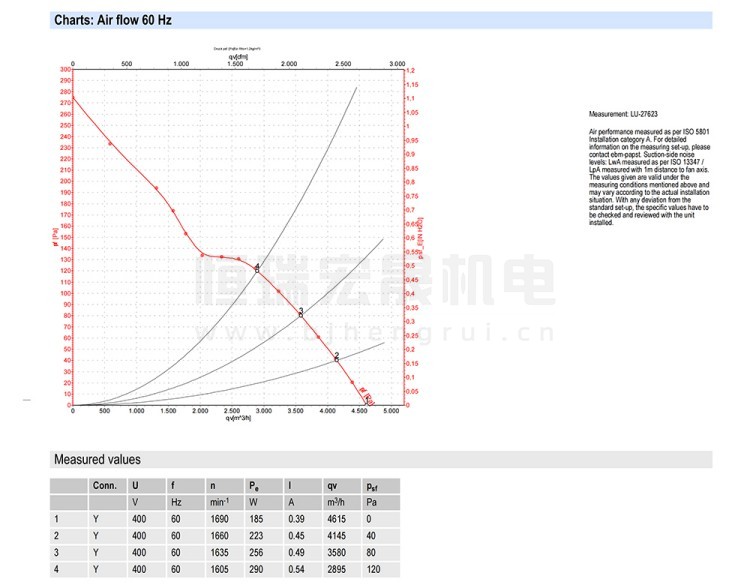 德国ebmpapst S4D400-AP12-38 轴流风机结构风量图