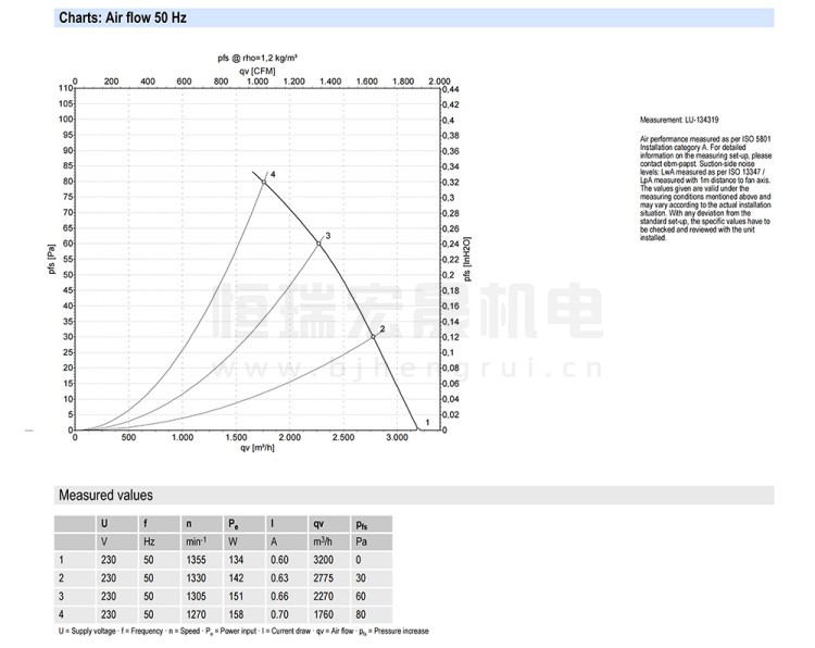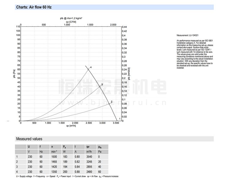德国ebmpapst S4E350-AN19-81 轴流风机结构风量图