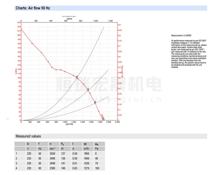 德国ebmpapst W2E250-HL06-13/A01 风机结构风量图