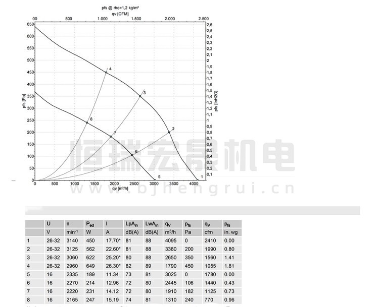 德国ebmpapst W3G385-CT65-81 风机结构风量图