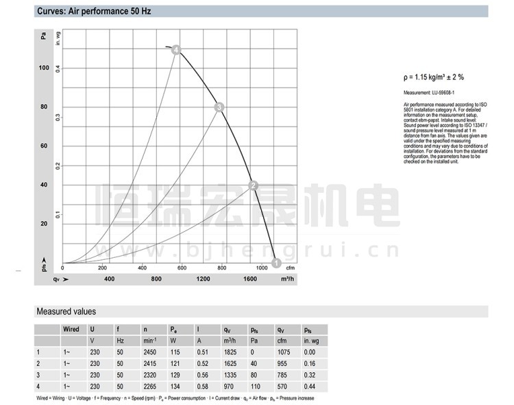 德国ebmpapst S2E250-AL06-01 风机结构风量图