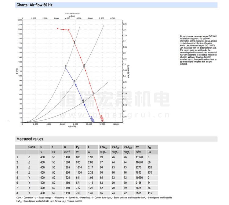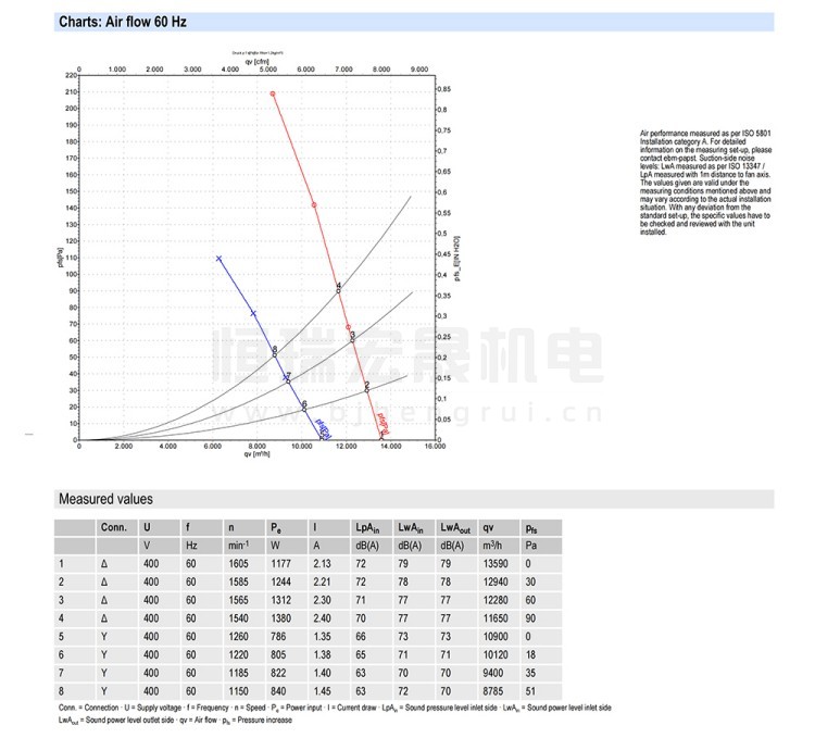 德国ebmpapst W4D560-GQ01-01 风机结构风量图