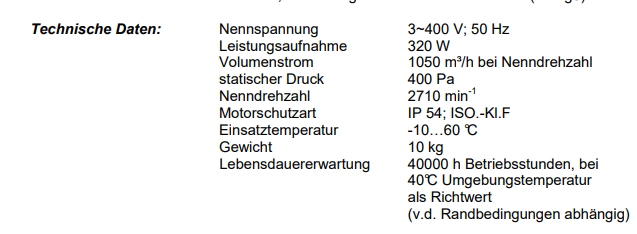 - 向后弯曲的风扇轮:铝板(ALMg3)