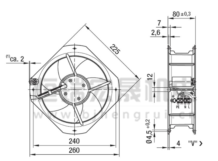 风叶直径 225*225*80mm