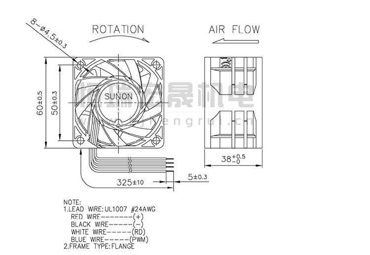 SUNON建准 PF60382B2-1000C-Q9H 直流风机结构风量图