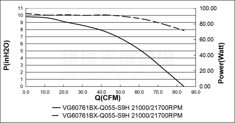 SUNON建准 VG60761BX-Q055-S9H 直流风机风量图
