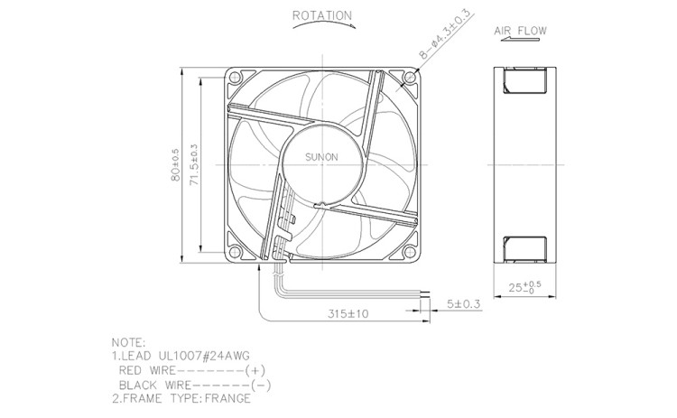 SUNON建准 EF80252BX-1000C-A99 直流风机结构风量图