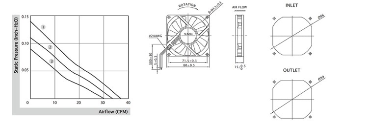SUNON建准 EE80151S1-000C-A99 直流风机结构风量图